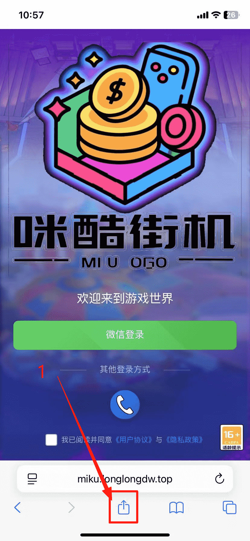 1点击 Safari 底部【分享】图标